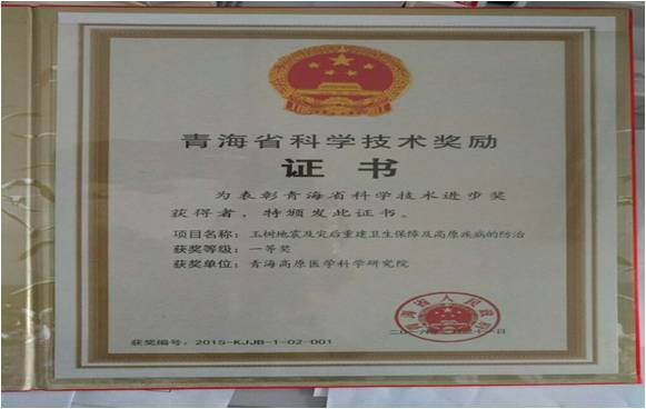 青海省科学技术奖励证书